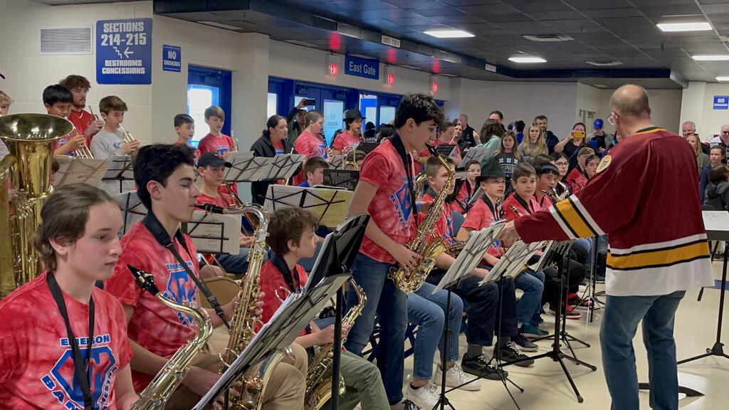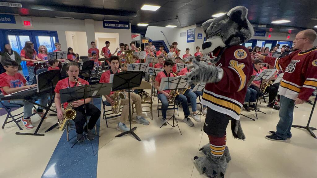 Emerson Jazz Band Performs At Wolves Hockey Game